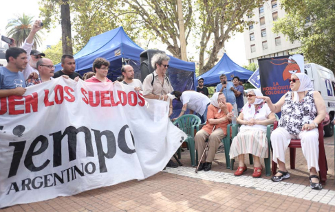 La titular de Madres además envió un mensaje de solidaridad para la lucha de Tiempo: “Uno a veces no sabe que el dueño de un diario es un pirata y un ladrón. Y es peligroso, porque uno no sabe si los que compran no son testaferros de los que se fueron antes. La plaza es para ustedes, estoy encantadísima de recibirlos. La pelea es dura pero no aflojen”, concluyó Hebe.