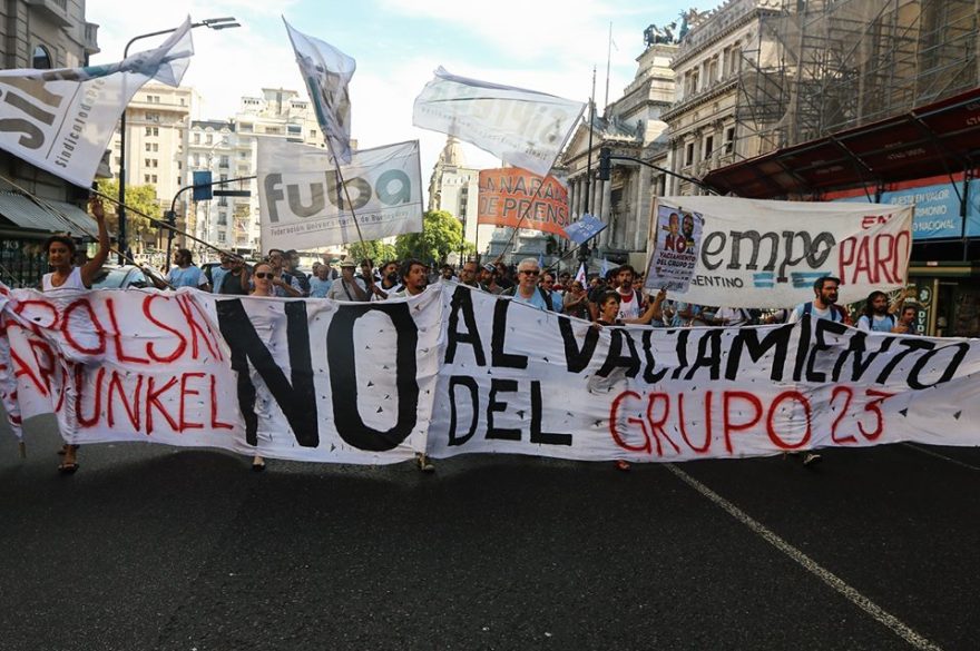 La de este jueves fue la tercera audiencia que realizó la funcionaria Brigante, desde que notificó a la empresa de la denuncia que presentó la Comisión Interna de Tiempo Argentino ante la cartera laboral para dar de las reiteradas imposiciones de pago incumplidas y de la decisión de la patronal de no imprimir el diario, una polémica e irresponsable medida “lock out” que ya lleva una semana: el mismo tiempo que suma la presencia pacífica que resolvió la asamblea de trabajadores del diario en defensa de los puestos de trabajo.