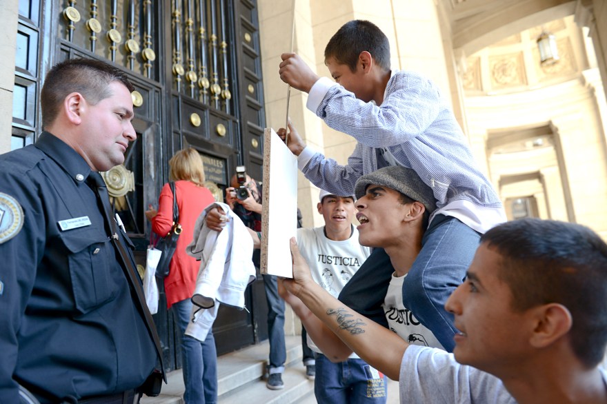 Ahora bien, ¿cómo la construyen? Con gendarmes reprimiendo a los operarios despedidos de Cresta Roja, con policías armados enfrentando en Tribunales a familiares de chicos muertos a balazos en Villa Lugano, con postas de goma y plomo contra los niños y niñas de una murga barrial, con la supresión sistemática de los derechos de la clase trabajadora, con la implementación de más de 25 mil despidos en el Estado, con el descarte de la política de Memoria, Verdad y Justicia, con la visita al Papa Francisco en tono negro falsete en Roma y cara de «yo no fui», con la prisión de Milagro Sala y la persecución de la protesta social en Jujuy, con la amenaza contra las Madres de Plaza de Mayo y el señalamiento a Hebe de Bonafini. Es decir: este gobierno vino a implementar un cambio de matriz cultural que refleja la derechización de la Argentina. Son los que llaman “proceso” a la dictadura. Creen que este grupo de trabajadores que está realizando un diario a pesar de no percibir salarios y aguinaldos hace tres meses, no merece la mediación del Estado. ¿Por qué? Porque aquí, dicen, hay 200 familias de la peor “lacra K”; si hasta nos han denostado con la calificación de “ñoquis” y el propio supuesto nuevo dueño del diario, Juan Mariano Martínez Rojas, de procedencia presumiblemente correntina, ha dicho que este colectivo de trabajadores de prensa se parece “al Ministerio de Acción Social”. Entonces, los mellizos que engendró el lobista de Israel, Sergio Szpolski ya son legión en esta zona franca. Rige la impunidad entre los protagonistas de la saga del helicóptero huyendo por los techos de la Casa Rosada. Las familias de 39 argentinos asesinados a balazos por la Policía Federal todavía reclaman justicia. Para ser un grupo de expertos psicópatas, se comportan como psicóticos que niegan la realidad. El asunto es que aquí el problema persiste.