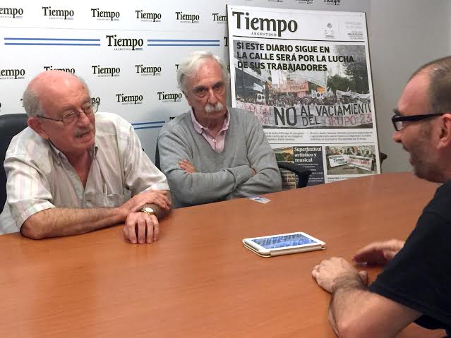 “El paro frenó el intento de copamiento y de desalojo de la redacción por parte de la cana y la Gendarmería” explica Eduardo de la Fuente. El Pelado, como se lo conoce en el gremio desde hace años, estuvo días atrás en la redacción de Tiempo junto con Nelson Marinelli, ambos integrantes de la redacción (y de la lucha) de la primera versión de Tiempo Argentino en la década del 80: “Lo decisivo en aquel momento fue que se anunció por las radios comerciales que estaba la guardia de infantería tratando de desalojarnos y se gestó un paro cuasi espontáneo –decretado por la en ese momento flamante Utpba– y pararon todas las redacciones y vinieron los compañeros de todos los medios para evitar la represión”, explicó De La Fuente.