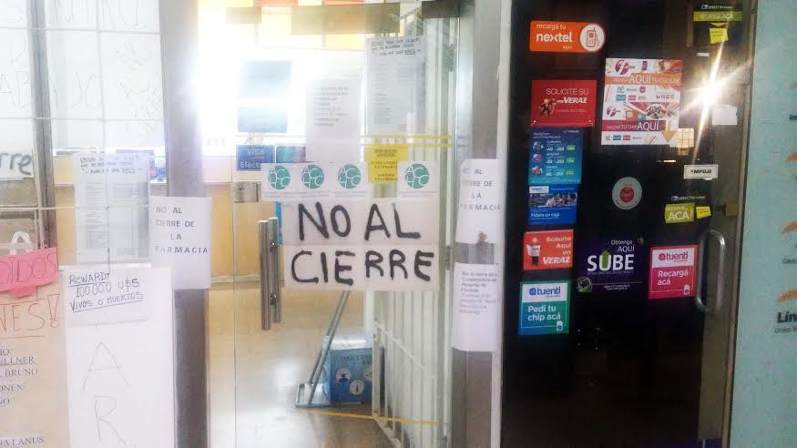 En esta farmacia el conflicto se inició en el mes de septiembre de 2015, cuando comenzaron a pagar los haberes en cuotas. Pero en enero dejaron de cobrar y hasta hoy no volvieron a ver un peso.